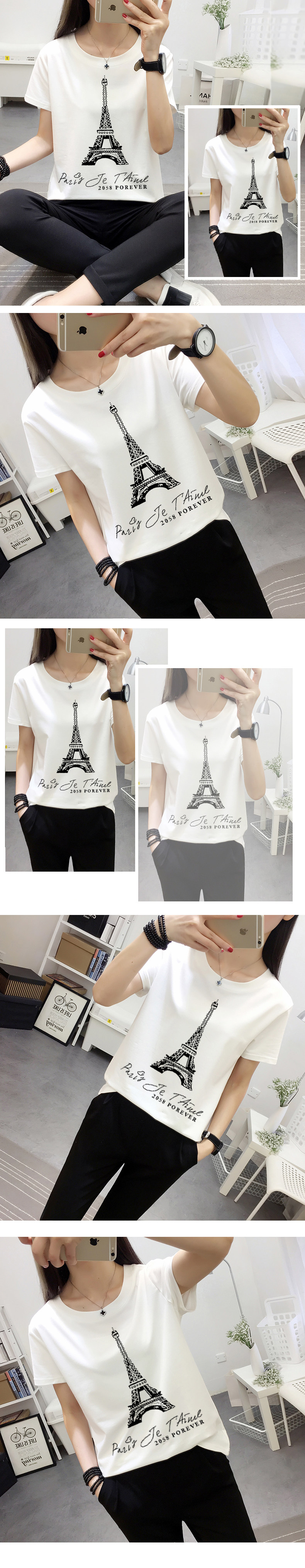 夏新款韩版卡通印花T恤女宽松纯色短袖体恤学生短袖学生上衣韩范