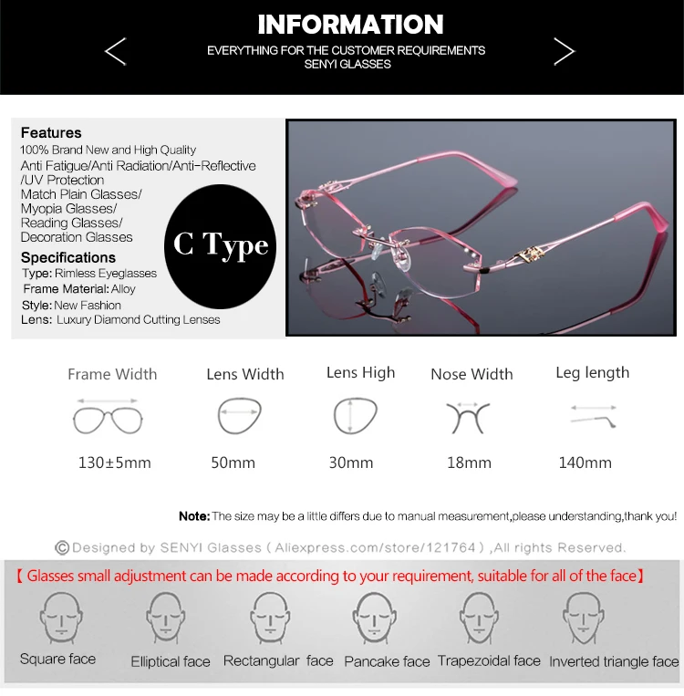 Frame Color:Silver/Gold/Red/Purple/Pink
