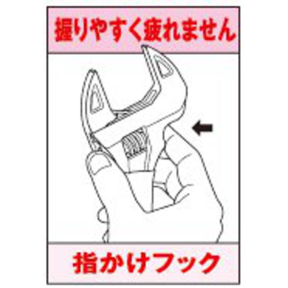 Open mouth dimension: 8 to 38 mm Total length: 157 mm Weight: 215 g Grip color: Blue ● Open mouth wide palm-sized monkey wrench.