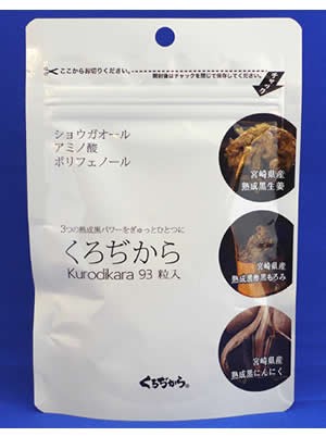 | 原材料 | サフラワー油、熟成黒にんにく、熟成黒酢黒もろみペースト、熟成黒生姜、ゼラチン、グリセリン、グリセリン脂肪酸エステル、ミツロウ |