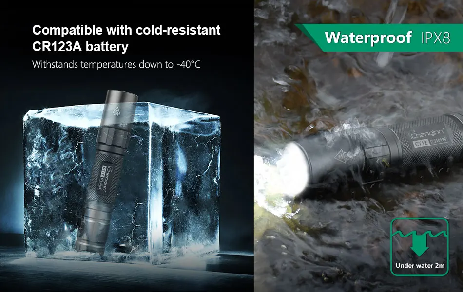 Attribute:2* CR123 or 1* 18650 battery powerful tactical flashlight