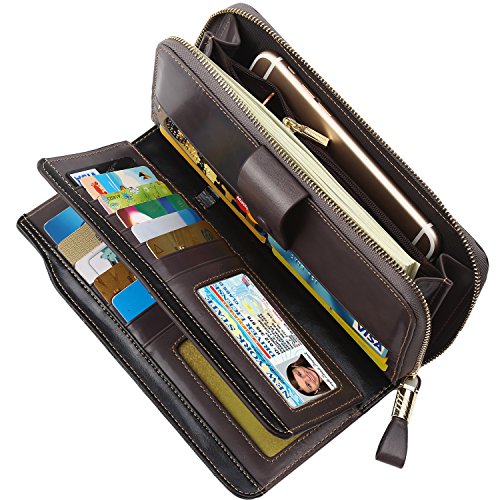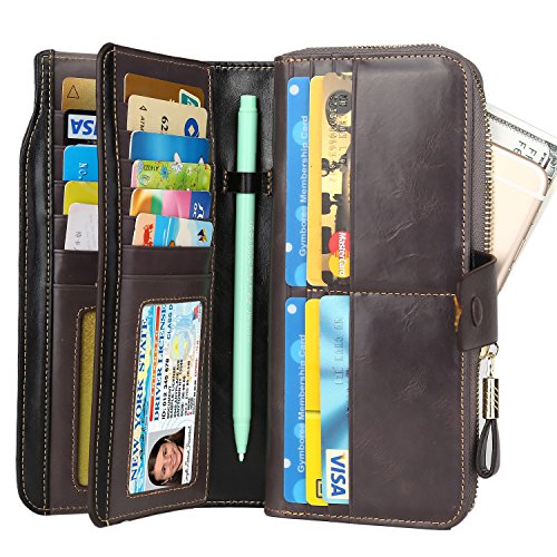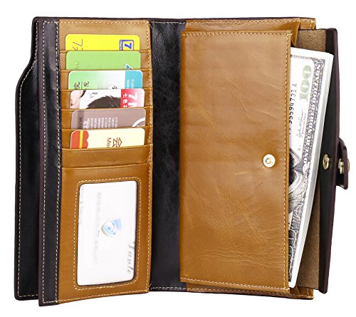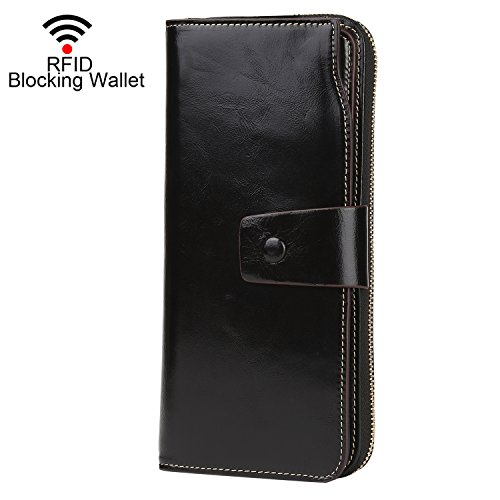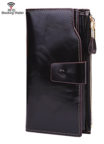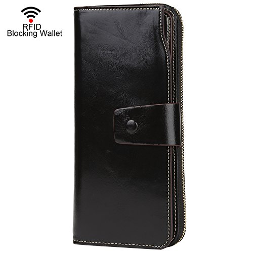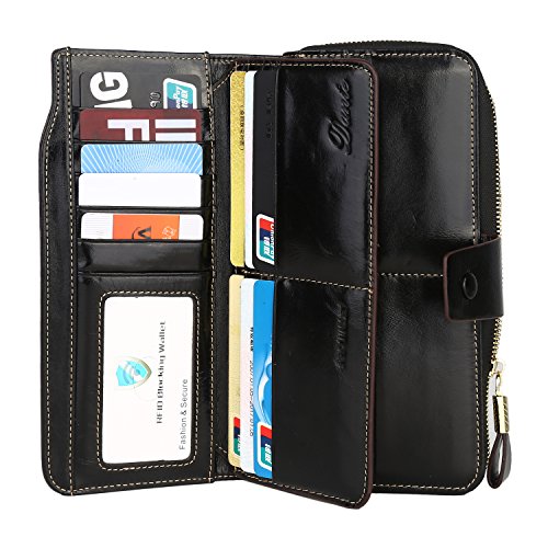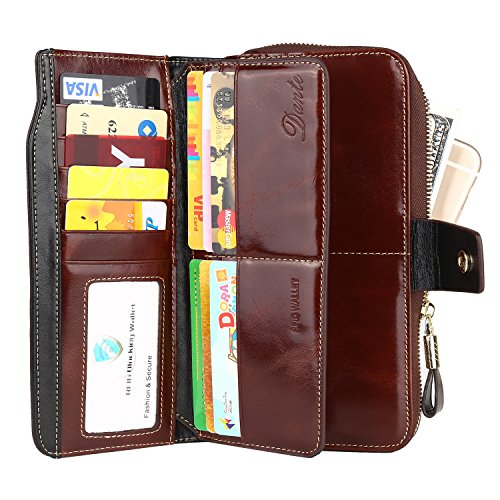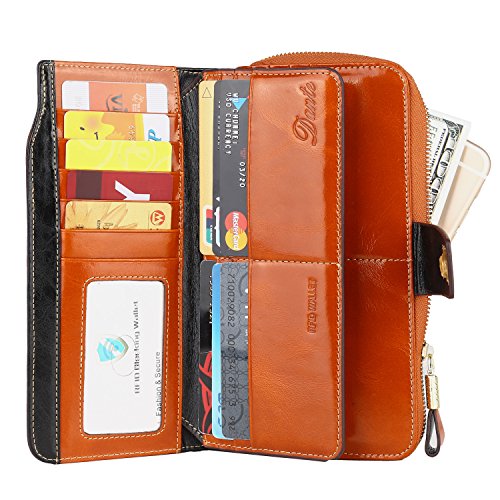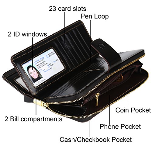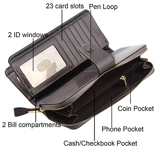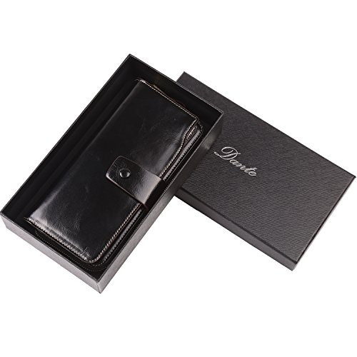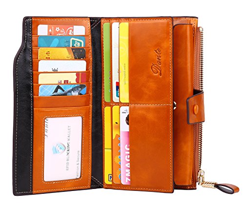 Binding : Apparel Product Description What is RFID? RFID (radio frequency identification) is a growing technology that uses radio waves to read and transfer information between devices. Personal cards that currently use this technology include credit cards, transit payment cards, and identification cards such as enhanced driver's licenses. Why use a RFID wallet? The information on cards with RFID is vulnerable to theft from nearby persons with RFID readers to scan and capture information on RFID cards without ever physically coming in contact (similar to scanning a barcode). RFID wallets protect cards from unknown scans with the unique protective layering crafted inside the wallet lining. Why choose a Dante wallet? Our wallets are not made with cheap bonded leather like most wallets in the market, but are crafted and sewn together using 100% premium cowhide nappa leather that will endure the wear and tear of everyday use for years to come. Our wallets are designed to protect without sacrificing in aesthetics. The roomy design includes 23 credit card slots, 2 clear slots for ID, 2 full-length bill compartments, 2 Large Cash/Checkbook/Phone pocket,1 zippered pocket for change and a pen loop. The RFID blocking layer has been tested to block signals ranging from 10MHz and above and does not make crinkling noises as with other RFID wallets in the market. Our wallets are wrapped and packaged in attractive gift boxes making it the perfect gift for any occasion and are covered by our product lifetime warranty after registration to ensure complete satisfaction with your purchase. Please note: This wallet shields RFID frequencies ranging from 10MHz to 3000MHz. It does not shield against older proxy cards that operate at low frequencies of 125 kHz. 0