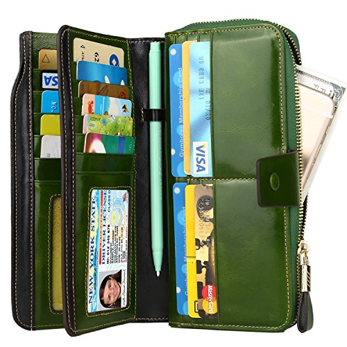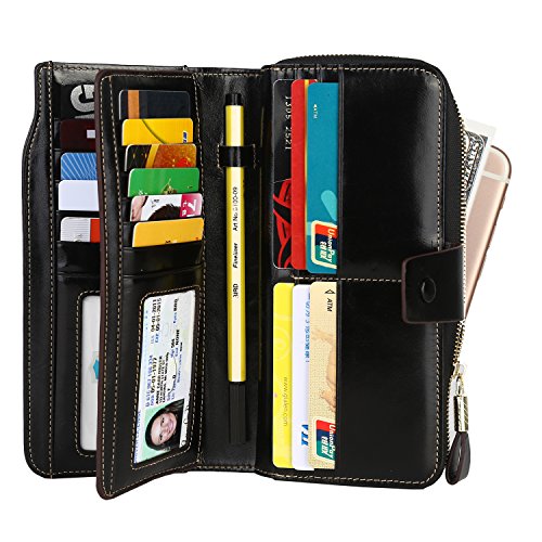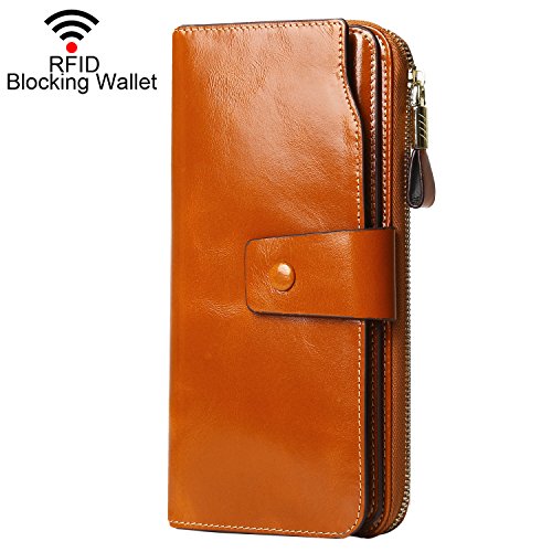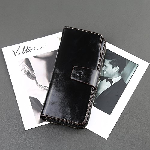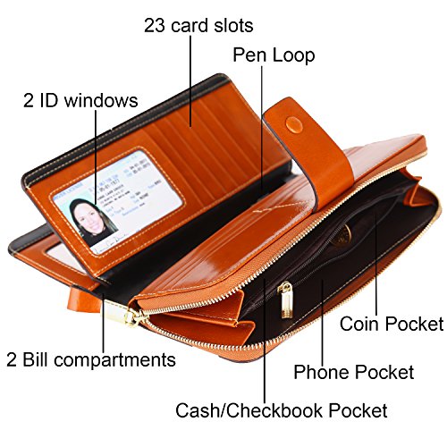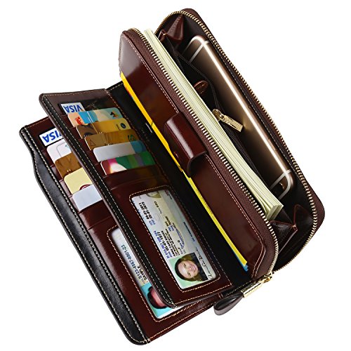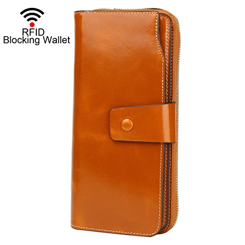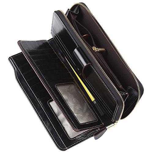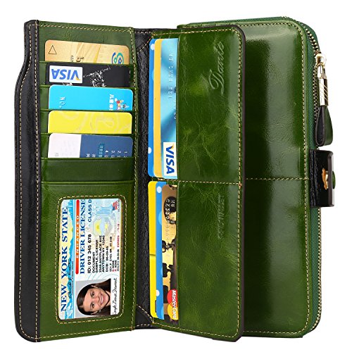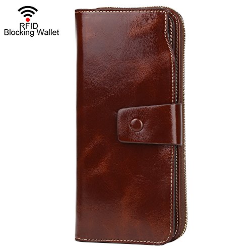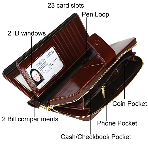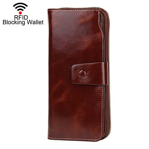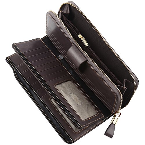 Binding : Apparel Product Description What is RFID? RFID (radio frequency identification) is a growing technology that uses radio waves to read and transfer information between devices. Personal cards that currently use this technology include credit cards, transit payment cards, and identification cards such as enhanced driver's licenses. Why use a RFID wallet? The information on cards with RFID is vulnerable to theft from nearby persons with RFID readers to scan and capture information on RFID cards without ever physically coming in contact (similar to scanning a barcode). RFID wallets protect cards from unknown scans with the unique protective layering crafted inside the wallet lining. Why choose a Dante wallet? Our wallets are not made with cheap bonded leather like most wallets in the market, but are crafted and sewn together using 100% premium cowhide nappa leather that will endure the wear and tear of everyday use for years to come. Our wallets are designed to protect without sacrificing in aesthetics. The roomy design includes 23 credit card slots, 2 clear slots for ID, 2 full-length bill compartments, 2 Large Cash/Checkbook/Phone pocket,1 zippered pocket for change and a pen loop. The RFID blocking layer has been tested to block signals ranging from 10MHz and above and does not make crinkling noises as with other RFID wallets in the market. Our wallets are wrapped and packaged in attractive gift boxes making it the perfect gift for any occasion and are covered by our product lifetime warranty after registration to ensure complete satisfaction with your purchase. Please note: This wallet shields RFID frequencies ranging from 10MHz to 3000MHz. It does not shield against older proxy cards that operate at low frequencies of 125 kHz. 0