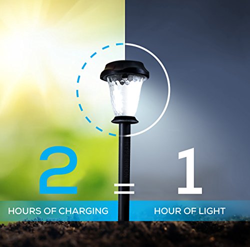 ✔ HIGH CAPACITY BATTERY - 4 hours of sunlight provides the battery with a full charge to last through the night. Premium quality Generation 5 solar panels collect light quickly and efficiently to ensure optimal solar light performance.