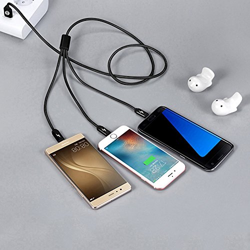 【3-in-1 Multifunction Charger Cable】1x type-c Cable + 1x Android Cables + 1x IOS cable, It will be better to use power source with 2A current or over when you charge several devices at the same time.