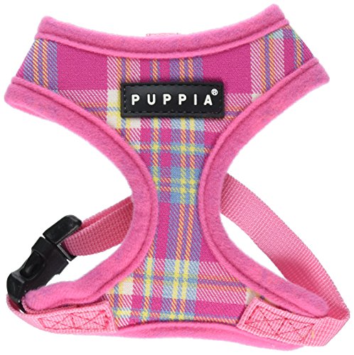 Studio : Puppia Int'l Inc. Publisher : Puppia Int'l Inc. Binding : Misc. Product Description The Spring Harness A features the Puppia rubber label on the chest portion. This is an "over-the-head" harness that also has an adjustable chest belt. It features an checkered pattern and solid schemed. It is available in Sky Blue and Pink in sizes ranging from Extra Small to Large. Matching lead is available and sold separately. Please note that because these products were created with small/medium dog breeds in mind, larger sizes (i.e. Large, Extra-Large, etc.) do not necessarily mean larger breeds. Please refer to image of the size chart. Weight figures are for estimates only. Always use actual measurements. Please note that when measuring your dog, the measurement for the neck must be taken at the BASE OF THE NECK and chest girth must be taken behind the front legs. Also it is important to take into account the size of the dog's head as well as neck girth and chest girth. Since some dogs have a much larger head than their neck, please be sure that the neck opening is large enough to slide over your dog's head. 0
