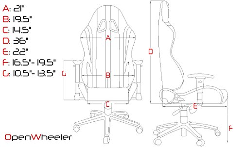 - Feature : Adjustable Height and Armrerst | Adjustable Backrest / Recliner down to 170 degrees | Rocking / Tilt Function / Lumbar cushion and headrest pillow included / Highest Quality: high-density cold cure foam filling, synthetic leather, sewing | Metal base / Class 4 gas lift up to 330lbs | Integrated sturdy tubular steel frame with elastic strap supports / Embroidered OpenWheeler® logo on the front and on the pillows. Soft touch armrests.