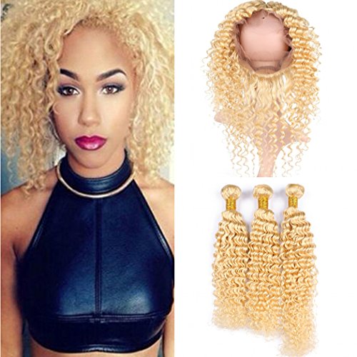Studio : Zara Hair Publisher : Zara Hair Binding : Misc. Product Description 1.Hair Material: 100% Peruvian Virgin Human Hair 613 Bundles and 360 Frontal 2.Hair Texture: Deep Wave Curly 360 Lace Frontal with Bundles Blonde 3.Hair Weight: 95-100g/pcs (3.2-3.5oz) for Bundles,70-80g.pc for 360 Closure 4.Hair Color: #613 Blonde Bundles with 360 Frontal 5.Hair Length:10"-30" for Hair Weaves,8"-22" for 360 Closure 6.360 Lace Frontal Closure Size:22.5X4X2Inch Free Part with Baby Hair 7.PackingShipping:Pvc Bag(3Pcs Hair Weft with 1Pc 360 Closure ,4Pcs/Lot)Free Shipping. Tips Q1: ABOUT WASHING THE HAIR? 1. Wash the hair extension every week. 2. Use a mild shampoo, rinse and leave to dry. 3. Do not blow the root of hair too near with the hair drier. 4. Do not gasping the root of hair extension overexert when washing. Q2. ABOUT COMBING? 1. Use a smooth-edged wide-toothed comb to your hair extension. 2. Avoid brushing the hair when it's wet always. 3.When detangling your hair, start with the bottom of the extension and work your way up to reduce pulling at the hair.