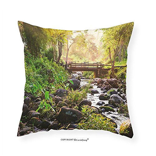 (VROSELV)/Kids' Furniture Room Decor/Room Decor/DIRECT FROM USA/VROSELV Custom Cotton Linen Pillowcase Landscape Small Waterfall in Deep Forest Thailand Sunlig...