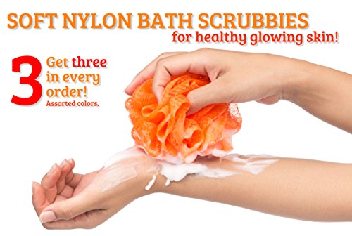 - HEALTHY SOFT SKIN - Do you suffer with dry skin year round? Our skin dries out from both heat and air conditioning. Year round the skin needs healthy exfoliation to stay soft and smooth. We want you to have healthy skin, so not only can you massage and scrub your feel but the 2 nylon bath puffs and back scrubbie will reveal sexy smooth soft skin. Your skin will have a radiant glow and feel softer.