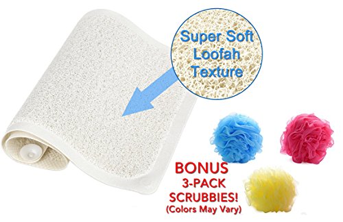 Healthy Skin Loofah Shower Bath Mat with 3 Bath Scrubbie Bonus Pack, Fast Drying Non-Slip Anti-Bacterial Mat- Soft and Comfortable under foot with HAPPINESS GUARANTEED from Honest Matters