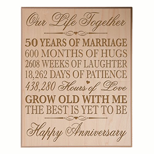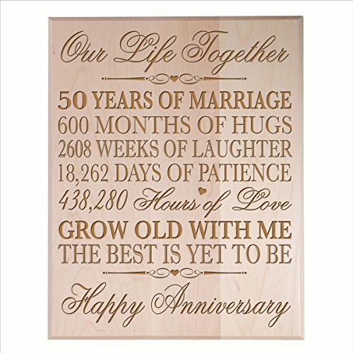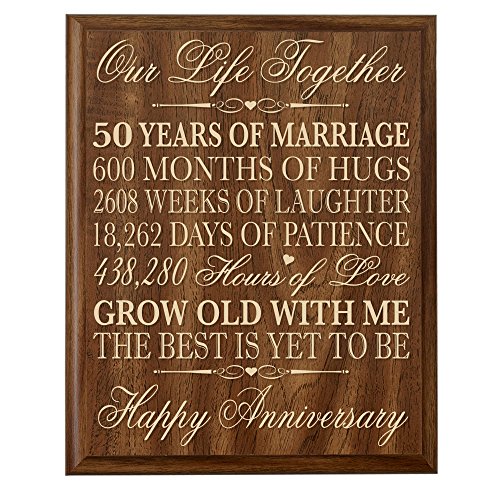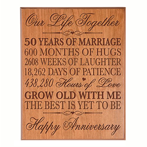 Honor the happy couple with a personalized 50th wedding anniversary cherry wall plaque. A treasured and lasting personal keepsake for wedding or anniversary. 50th Anniversary plaque can be displayed on tabletop or hung on wallFeature
