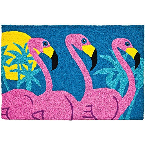 -. Feature : Indoor Outdoor Machine Washable Jellybean Rug / Tropical Flamingo / Approximately 21 inches X 33 inches / 100% polyester upper and backing / Machine wash cold water with like colors. No bleach, line dry.