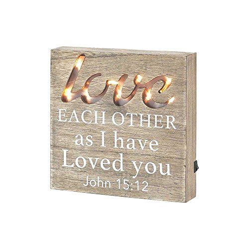 Wood Tabletop Plaque 7.75" with LED Lights - Love One Another As I Have Loved You John 15:12