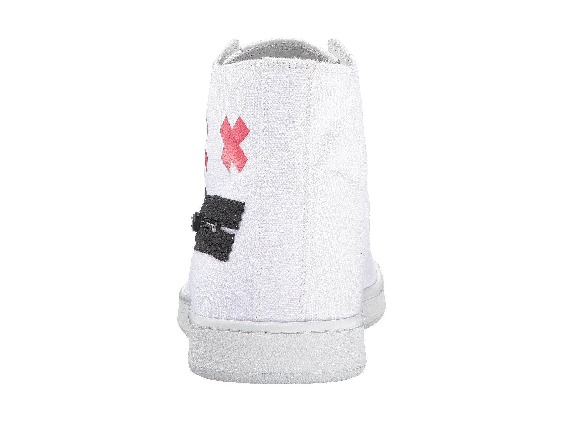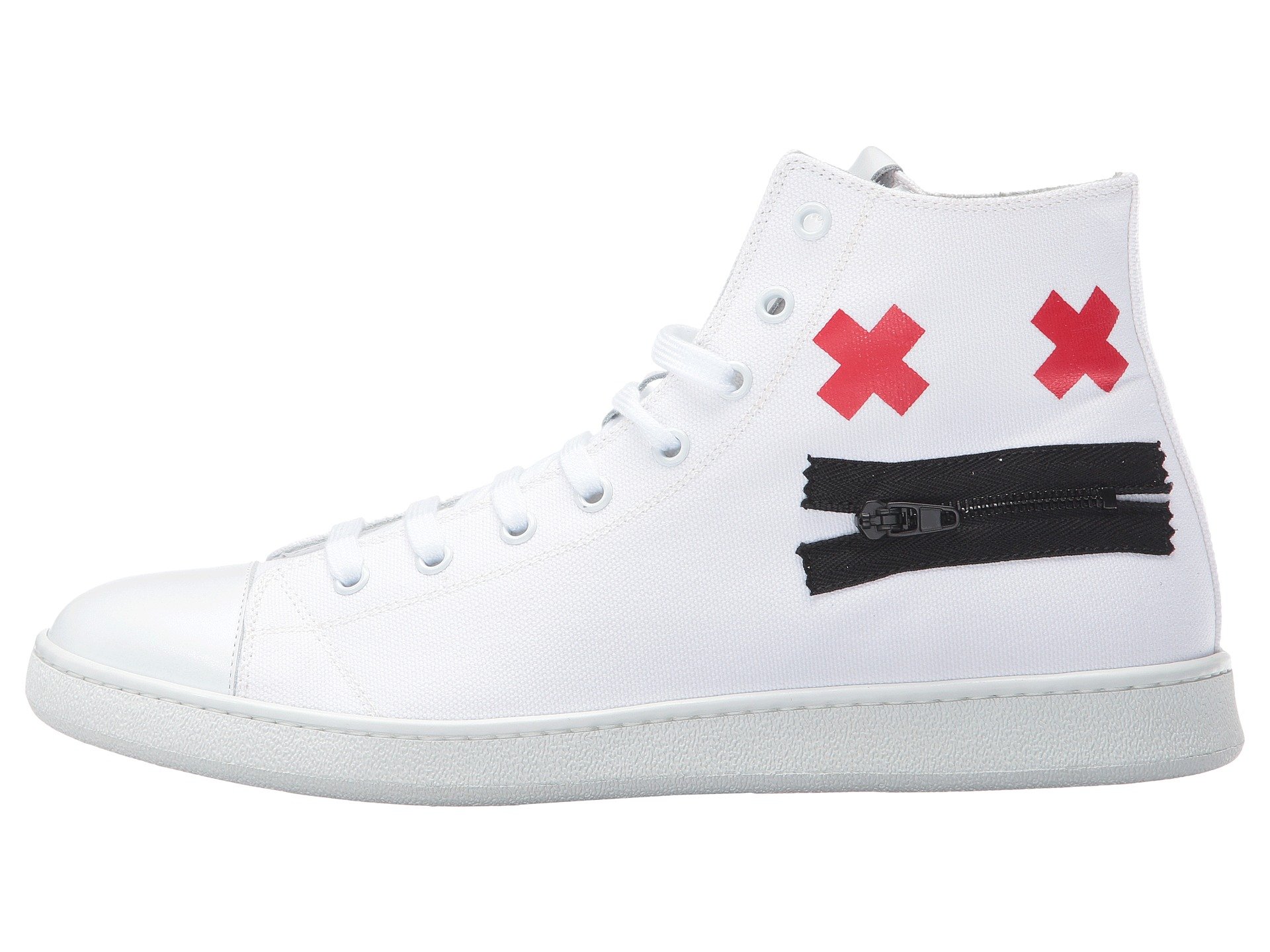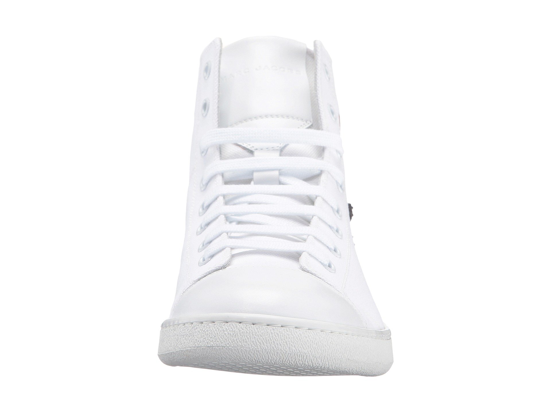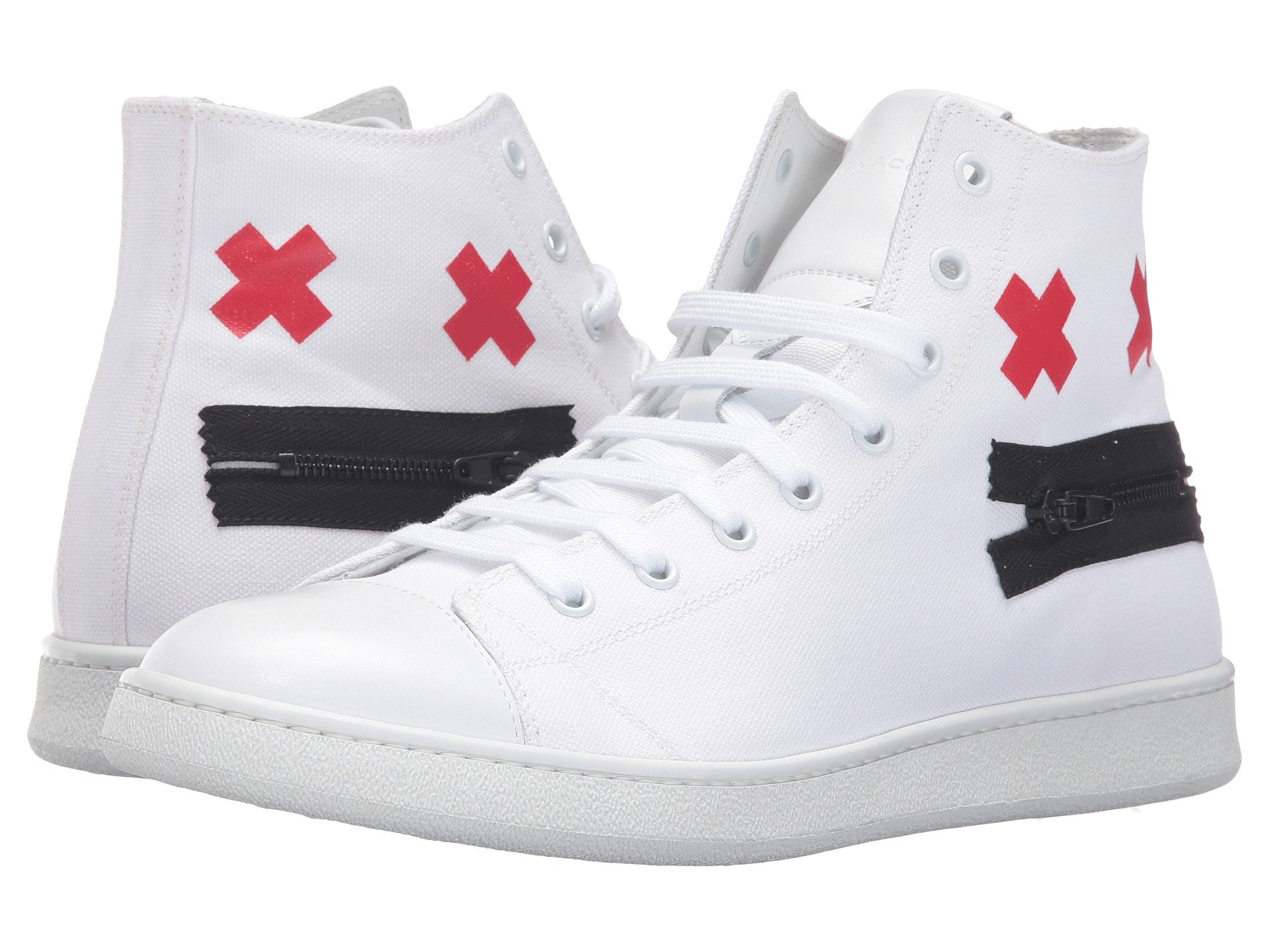 | Product Information SKU: #8780380A time-honored look will be all yours with your Marc Jacobs™Canvas Zip Face High Top.Leather and textile upper.Lace up front closure with metal eyelets.Face graphic detailed to each side with zip closure at the mounth.Pull-on style.Round toe silhouette.Leather lining.Lightly padded leather insole with embossed logo.Durable synthetic outsole.Made in Italy.This item may ship with an attached security tag. Merchandise returned without the original security tag attached or a damaged tag may not qualify for a refund.Product measurements were taken using size 42 (US Men's 8), width D - Medium. Please note that measurements may vary by size.Weight of footwear is based on a single item, not a pair.Measurements: Weight: 15 oz Shaft: 4 1?2 in |