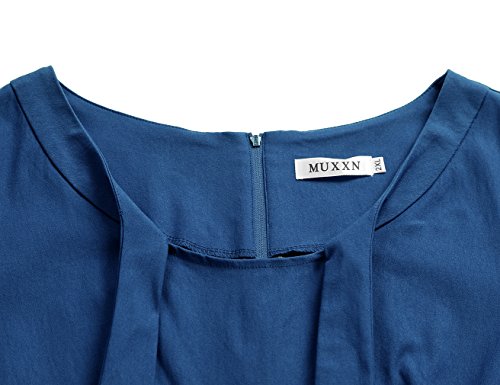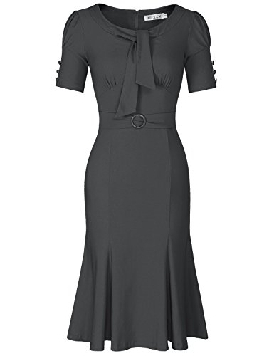 Pinup 1950s Mermaid Style,Tie Neck and Button Decoration,Ruched Sleeve
