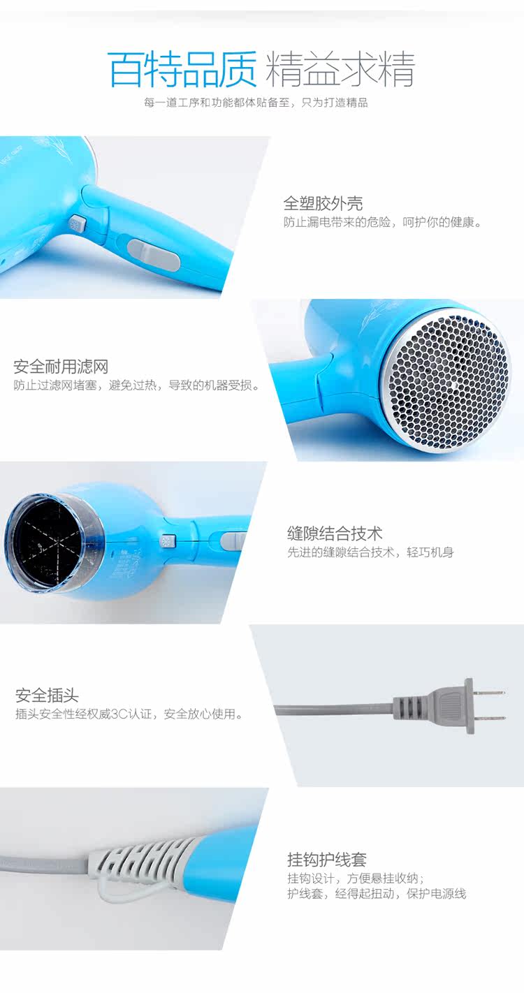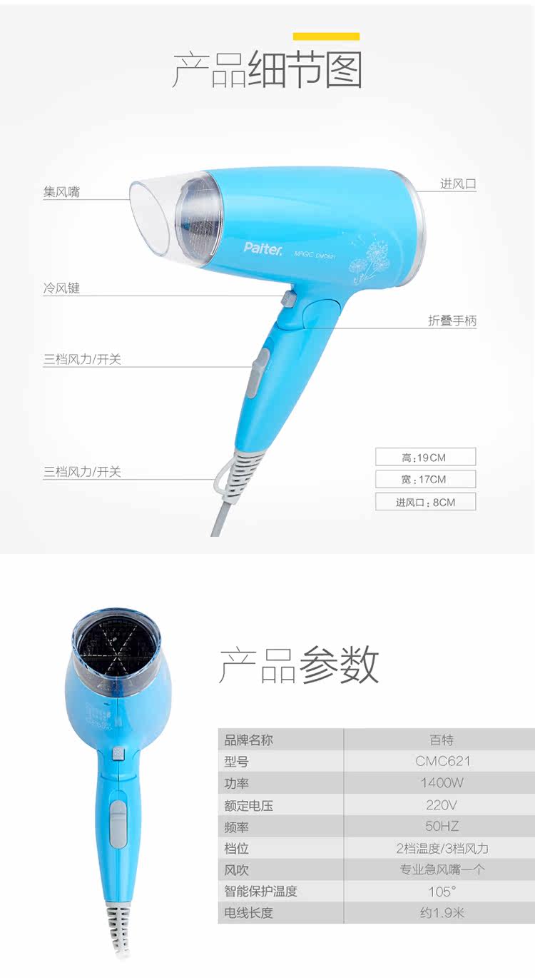 百特电吹风吹风机时尚迷你款可折叠