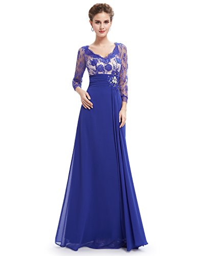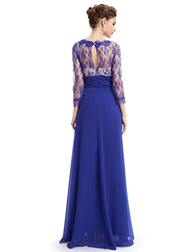 This gorgeous evening dress features a flattering V-neck design with a 3/4 sleeve sheer eyelash lace design. This stunning design cinches in the waist with a rhinestone applique and has a concealed back zipper. Dress is fully lined with no stretch. The beautiful blue dress is perfect for any of fall or winter formal occasionsFeature