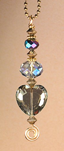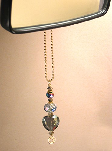 -. Title : Rear View Car Mirror Ornament Amber Green Heart Charm
