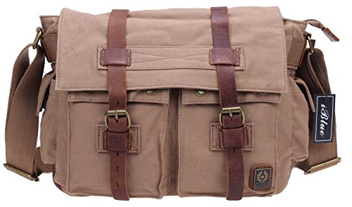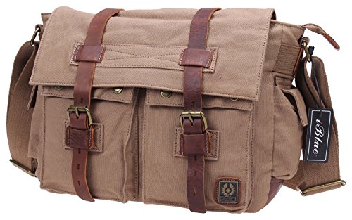 -. Brand : iblue -. Color : Green -. Department : unisex-adult -. Feature : Note: the VINTAGE CANVAS MESSENGER BAG has a little leather smell ,but not affect quality and functionality.If you have OCD about things staying "perfect looking" this bag is not for you. / THE CANVAS SHOULDER BAG IS SUITABLE FOR TEENS TO SCHOOL- the size is approximately 13.5''L x 10'' H x 5.3'' W inches. / ONE LAPTOP BRIEFCASE FOR ALL YOUR ACTIVITIES- Because it's also as a TRAVEL BAG,STUDENT SCHOOL BAG,SPORTS BAG,COLLEGE BOOKBAG,DAILY HANDBAG. / THE CLASSIC DESIGN OF THIS MILITARY BAG MAKES IT POPULAR AMONG EVERYONE- adults, teens, men, women, boys and girls, whether you walk, bike, drive, bus or train.Related topics: Haversack, courier, messengers, men's, women's, travel, bookbag, cloth, duffle, office, teens, case, business, sachel, mailbag, student, utility. / THE CASUAL SCHOOLBAG HAS 9 POCKETS IN TOTAL- Four exterior pockets,one back zipper pocket(11.5''L x 8.3''H).In addition to the main pocket,there are two inner side pouch(can hold iphone or wallet) and one inner pocket. -. PackageQuantity : 1 -. ProductGroup : Apparel -. ProductTypeName : LAGE -. Title : Iblue Durable Canvas Leather Military Laptop Shoulder Messenger Bags for Men Women #0791