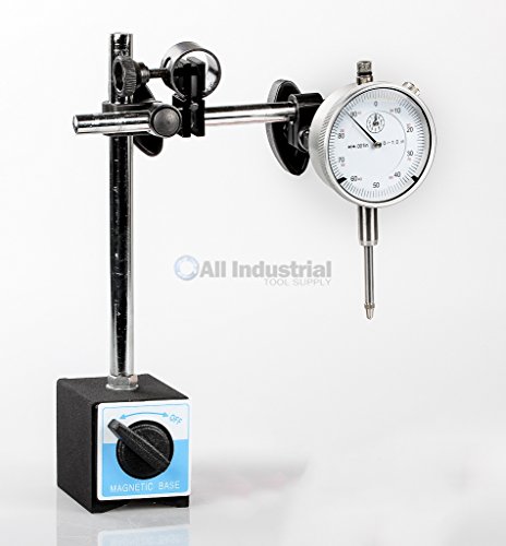 Includes 9-1/2"H base with 6-1/2" control arm, dial indicator gauge and custom-fit protective case