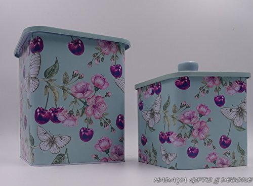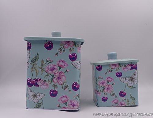 Cottage themed French style storage tin, shabby chic, Set of 2 With beautiful Purple berries , Floral and Butterfly Design