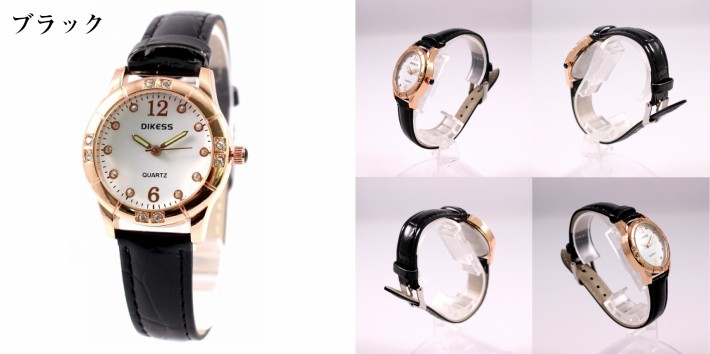 時計 腕時計 レディース レザー バンド クロコ風 高級感 ブラック