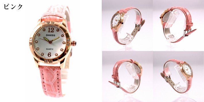 時計 腕時計 レディース レザー バンド クロコ風 高級感 ピンク