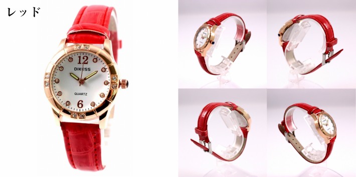 時計 腕時計 レディース レザー バンド クロコ風 高級感 レッド