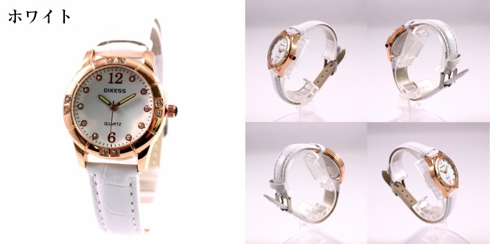 時計 腕時計 レディース レザー バンド クロコ風 高級感 ホワイト