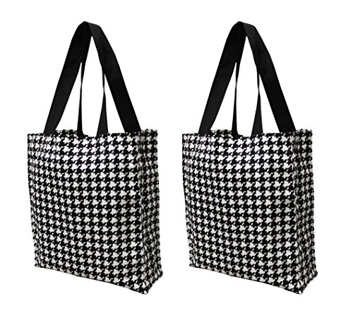 Earthwise Reusable Grocery Shopping Tote Everyday Bag Houndstooth Print Made in the USA ( Set of 2 ) …