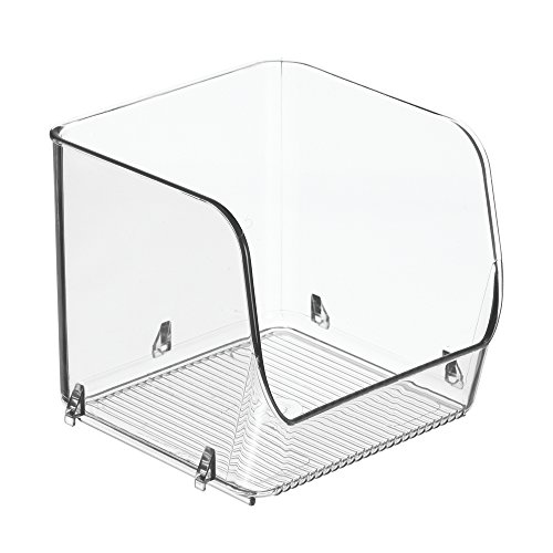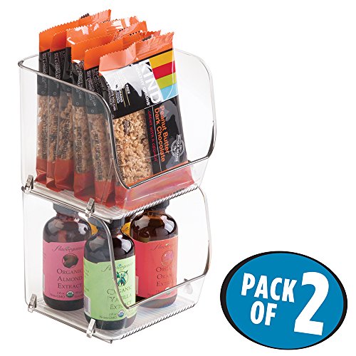 mDesign Stacking Organizer Bins for Kitchen, Pantry, Office, Bathroom - Pack of 2, Small, Clear