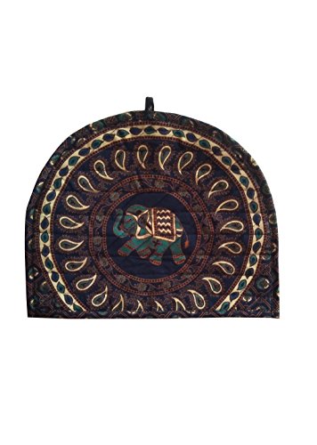Indian Cotton Mandala Blue Color Tea Cosy Elephant Printed Abstract Tea Pot Decor Cover Traditi...