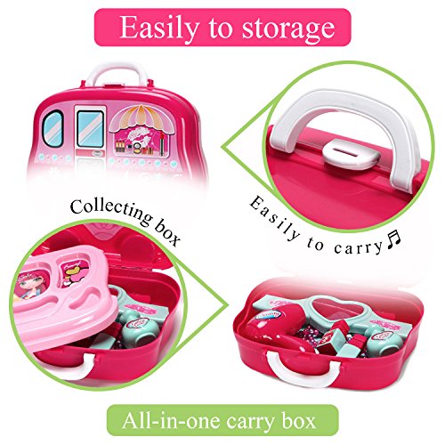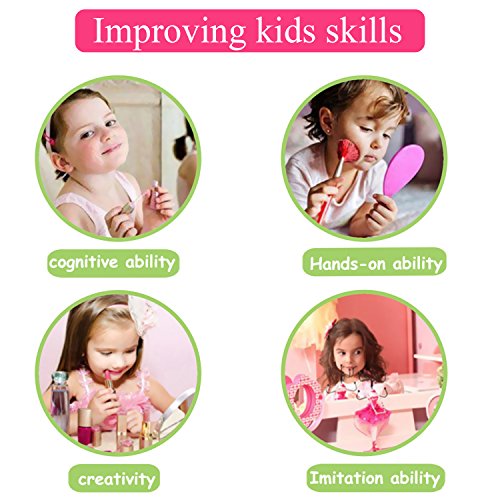 ☀Recommend for age 3+. Please let your children play this pretend makeup case under adult supervision. Do not let your children put this little part into their little month.