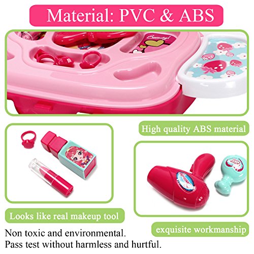 ☀Environmental and Non-toxic material. This pretend beauty salon makeup case is made of high quality ABS plastic material. Non toxic and environmental. Pass test without harmless and hurtful.