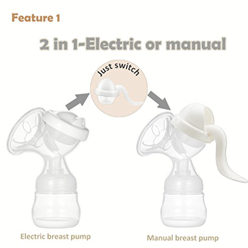 -. Feature : 1. Have Different Speed Patterns and Level of Suction: When breastfeeding, the milk starts with letdown and then the milk is expressed. Being able to switch speeds more closely mimics the act of breastfeeding a baby and maximizes milk production. / 2. Different Power Options: Pumping is most used for moms on the go, so make sure your pump is both electric powered or manual, for those times when the electricity goes out. / 3. Portable Breast Pump: This is one's essential and non-negotiable, if you need to pump outside the home. It is easy to fits easily into a tote. / 4. Electric Pumps: If need to pump at work, you're going to want to do so in the most efficient manner. With the electric breast pump, can extract milk from breasts quickly. Mom can get the job of pumping done in no time and get back to mom's day job. / 5. Safe and Hygiene - PP material, the bottle can be completely disassembled and cleaned without any blind corners. Won't hurt your baby.