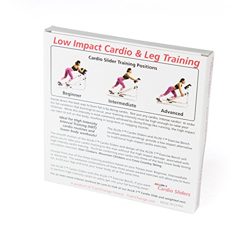 Don't underestimate these small, circular discs! The ALLN-1: Cardio Sliders take basic exercises to a whole new level. Your lunges, push-ups and mountain climbers will never be done the same way again. Every muscle group will benefit from these Cardio Sliders including: upper body (chest, back, shoulders) lower body (quads, hamstrings and glutes) core (mountain climbers, sliding planks, pikes)