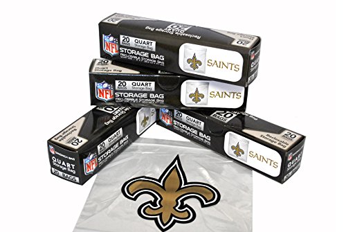 PlayAction NFL New Orleans Saints Food Storage Bags, 1 quart, Clear