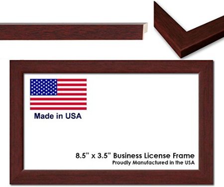 - Built to display business licenses and certificates measuring 8.5 x 5.5 inches. The Frame: Solid Wood Rich Mahohany Brown Finish