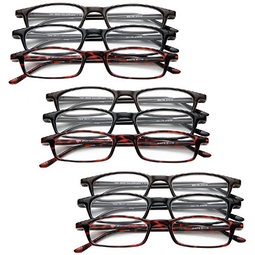 -. Feature : (Set of 9) Magnifying Reading Glasses +4.0 / +4.5 / +5.0. / Lightweight plastic frames. Half-eye style. / Set of 9 includes 2 brown, 2 black and 2 tortoiseshell colored frames. / For either men or women. / The +4.5 magnification may have assorted colors, our choice please.