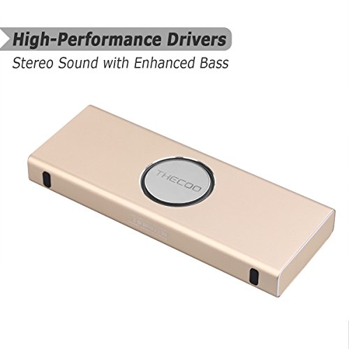 Stylish compact design with aircraft grade luxurious magnalium alloy body enhances sound propagation and exquisiteness; Wallet-sized & light-weighted mini speaker fits easily into any pocket or bag wherever you go.