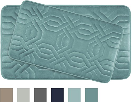 Bounce Comfort Chain Ring Extra Thick Premium Memory Foam Bath Mat Set of 2 with BounceComfort Technology, 20 x 32" Marine Blue