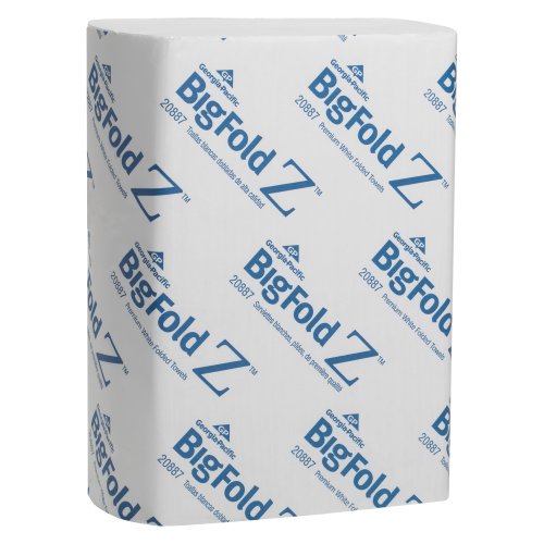 -. Binding : Misc. -. Brand : Georgia-Pacific -. Color : White -. Feature : Folded all-purpose paper towels for general-purpose cleaning and drying / Fits into C-fold and multifold dispensers / BigFold fold design dispenses one fully opened towel at a time / White color with embossed pattern / 1-ply paper reduces waste -. PackageQuantity : 1 -. ProductGroup : Home Improvement -. ProductTypeName : LAB_SUPPLY -. Title : Georgia-Pacific BigFold Z Paper Towel, C-Fold Replacement, White