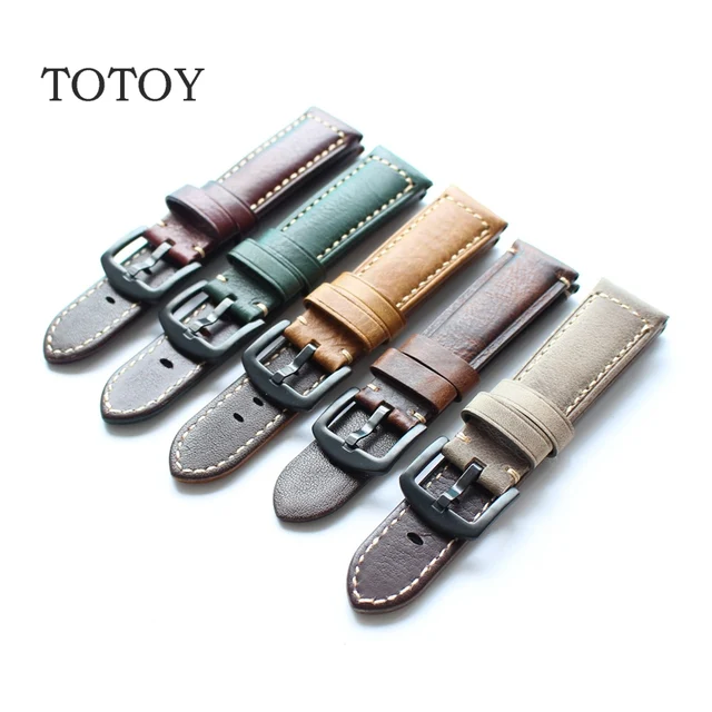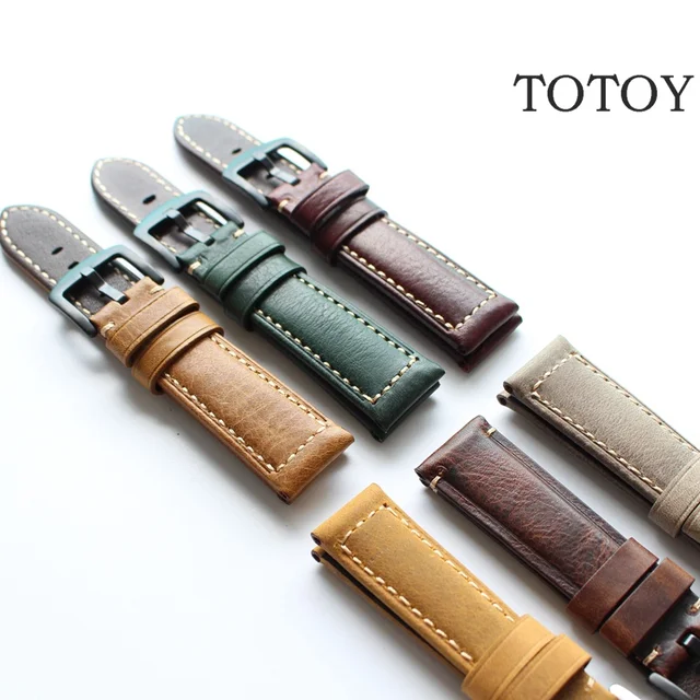 | [해외]TOTOY 수제 가죽 시계 줄, 레트로 스타일 20 미리메터 22 미리메터 부드러운 남성 송아지 가죽 스트랩, 적합한 군사 시계 시계 |