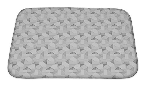 Gear New No Slip Microfiber Memory Foam Grey Optical Squares Pattern Bath Rug Mat, 24" X 17"