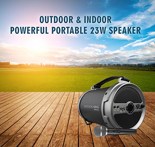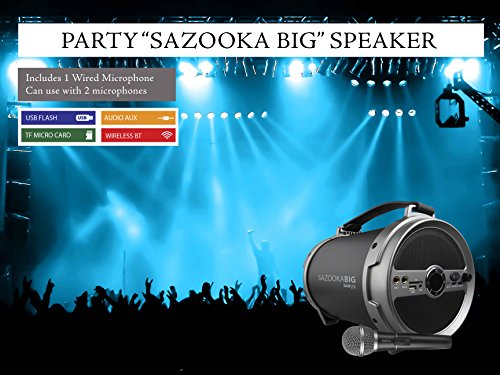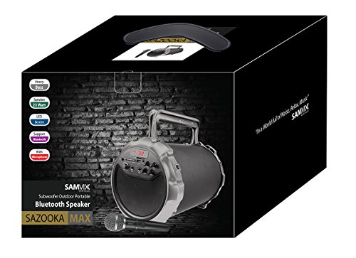 -. Title : SAMVIX SAZOOKA MAX BIG Portable Bluetooth Speaker Indoor / Outdoor 2.1 Hi-Fi SING ALONG with Wired Microphone EXTRA BASS, SD Card, USB, AUX, Party / Home Speaker (Wired Mic. Included)
