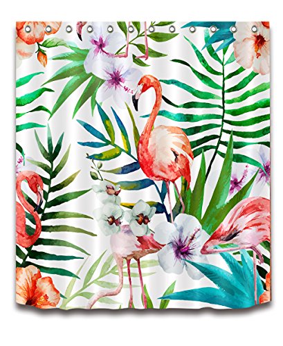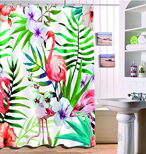 LB Floral Flamingo Shower Curtains 3D Digital Printing Bath Curtains 60x72 inch Bathroom Curtains Anti Bacterial Waterproof Polyester Fabric,Hooks Included