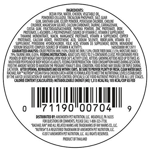 Rachael Ray Nutrish Natural Wet Cat Food, Ocean Fish & Chicken Catch-iatore, Grain Free, 2.8 oz tub, Pack of 24
