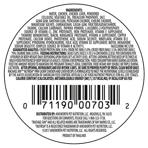 Rachael Ray Nutrish Natural Wet Cat Food, Paw Lickin' Chicken & Liver, Grain Free, 2.8 oz tub, Pack of 24