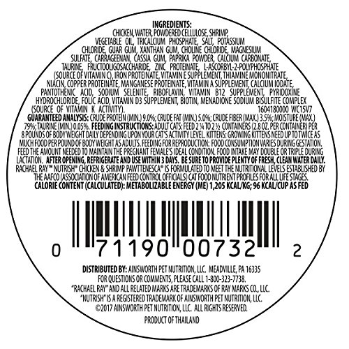 Rachael Ray Nutrish Natural Wet Cat Food, Chicken & Shrimp Pawttenesca, Grain Free, 2.8 oz tub, Pack of 24